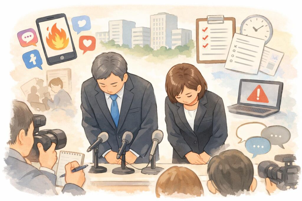 【プロが解説】謝罪会見で絶対押さえるべきポイント7選|準備から服装、質疑応答まで