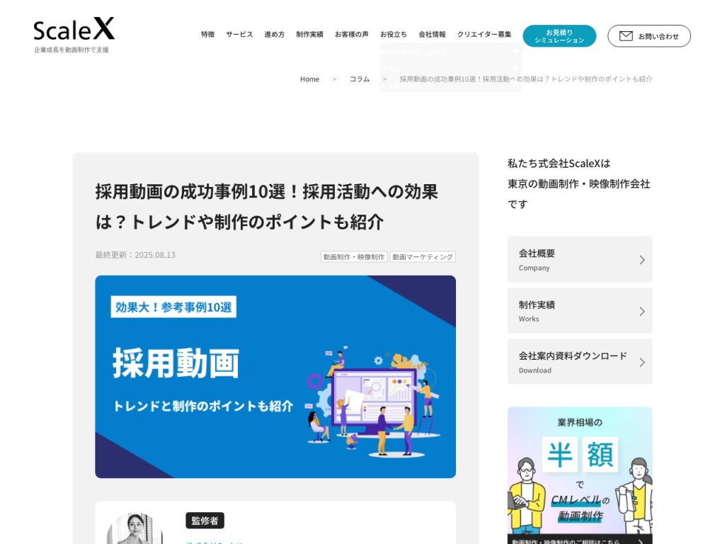 また、株式会社ScaleXの採用動画では、異なる部署の社員が日常業務の様子を自撮りで記録し、ナレーションで解説するという手法を採用しています。特に営業職とクリエイティブ職の日常の違いを対比させることで、応募者が自分に合った職種を選びやすくなる工夫がされています。